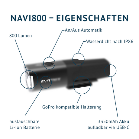 Enfitnix Navi800 LED Lampe - 800 Lumen - Wiederaufladbar via USB